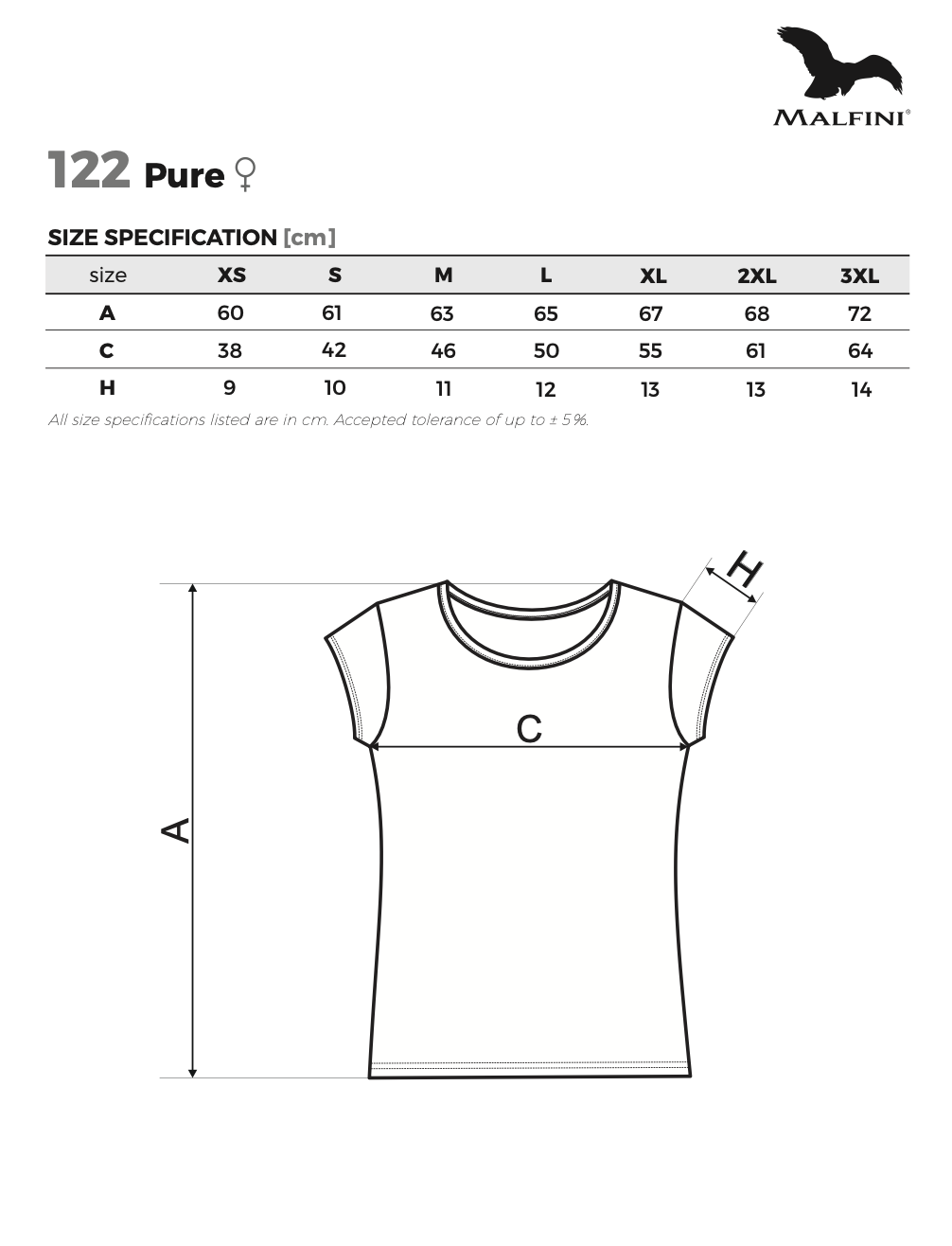 Tričko dámské Pure 122. Barva bílá. Velikost XS, S, M (detailní rozměry: Přílohy => Velikosti).